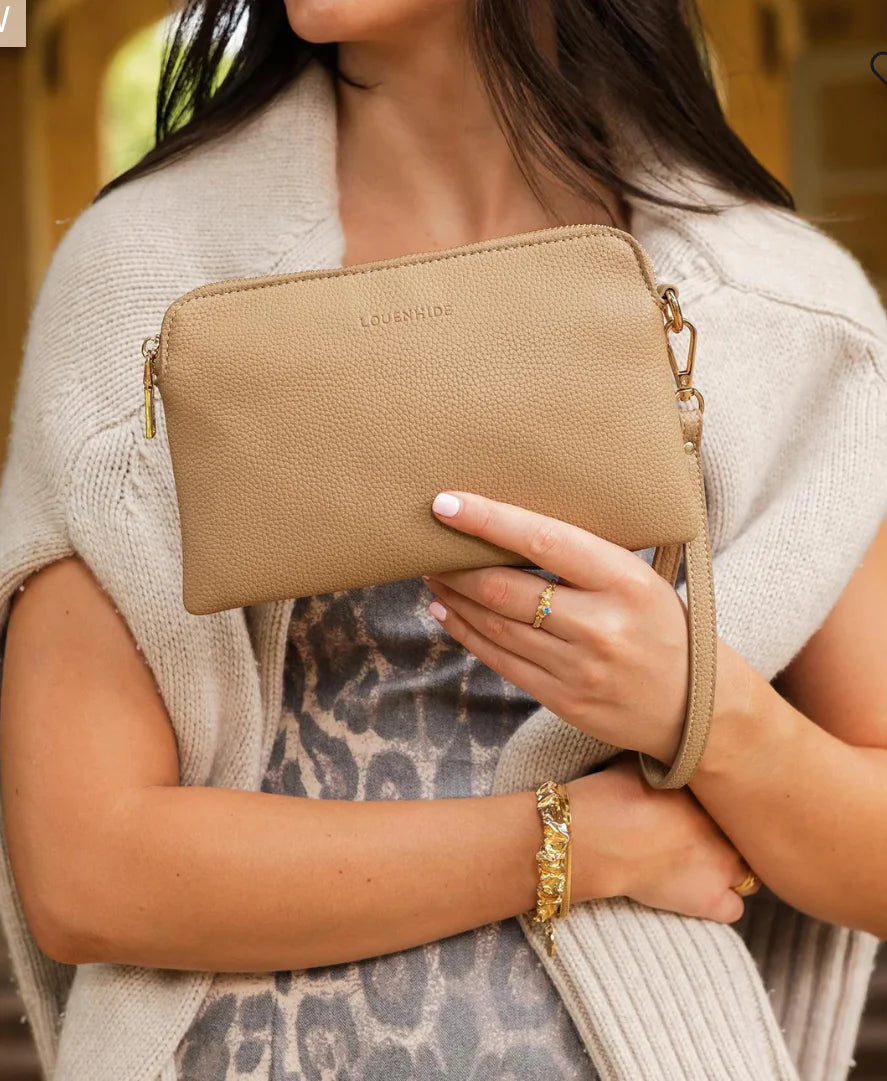 The Louenhide Poppy Clutch strikes the perfect balance between minimalism, versatility and style. She's the ideal addition to your tote as a sleek clutch wallet or the perfect grab-and-go companion when carried by the wristlet. Created with soft vegan leather with a compact design, your essentials are organised in the backside pocket while held safe with the secure zip closures. Never go without your essentials and easily adapt to every occasion with the Poppy Clutch.