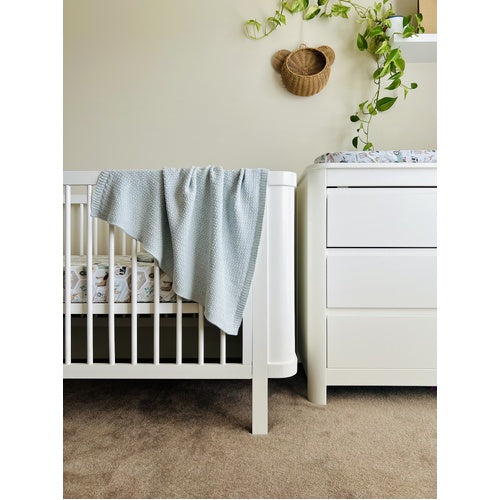 Our Mini & Me Herringbone Blanket Oatmeal Melange' is lusciously soft featuring a beautiful hearingbone knit, it is perfect as a sentimental gift for a newborn baby.